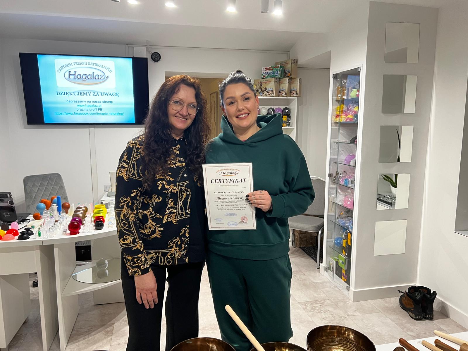 Oprócz tego jestem certyfikowaną nauczycielką jogi E-RYT Yoga Alliance oraz instruktorką medytacji mindfulness. Pracuję także jako muzykoterapeutka, stosując metodę Petera Hessa, a także jako aromaterapeutka. Posiadam również kwalifikacje trenera personalnego i instruktora fitness.